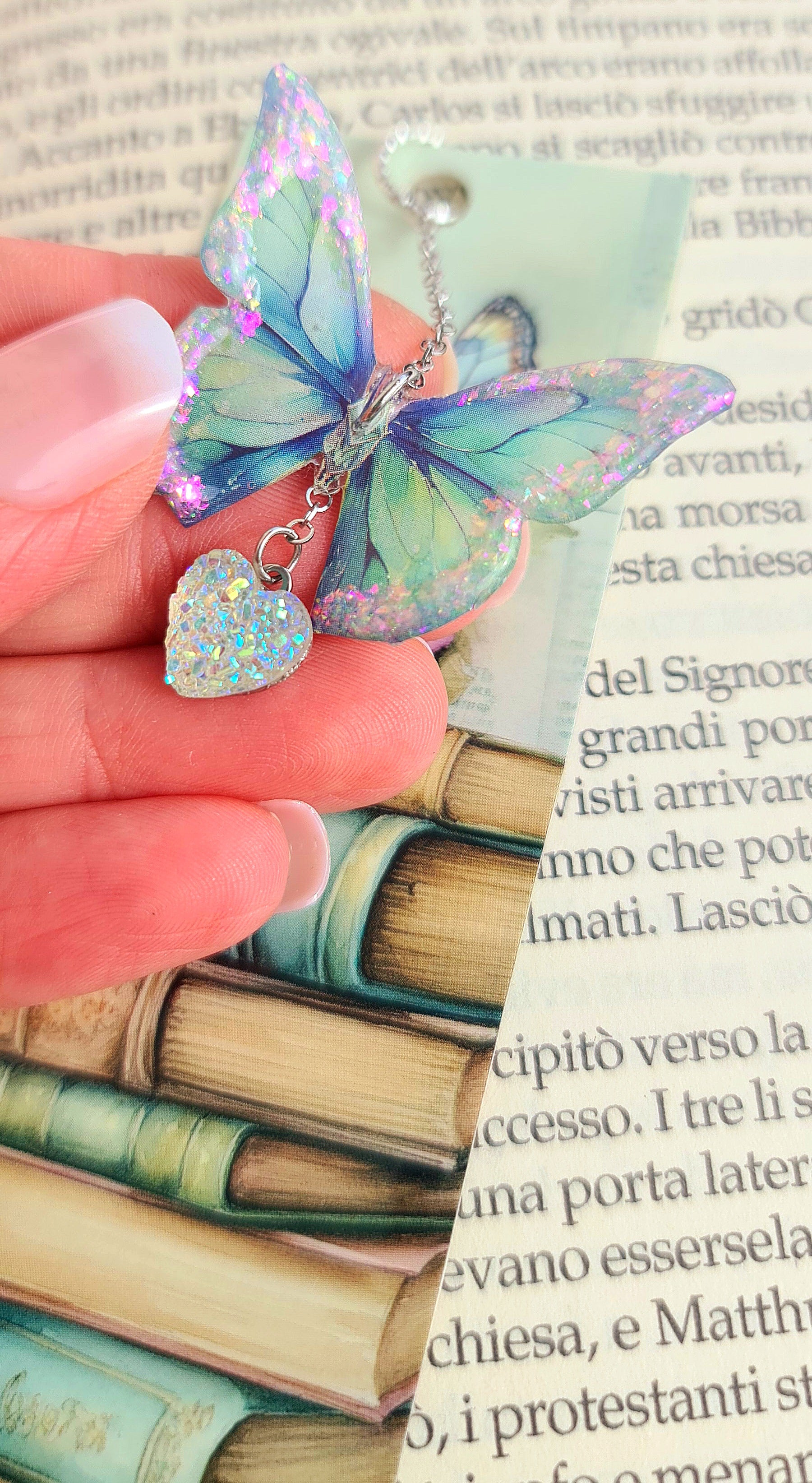 Besoin d'un petit cadeau pour accompagner un livre ? Ces marque-pages faits main sont originaux et colorés. Je les ai conçus et fabriqués moi-même, vous ne les trouverez donc nulle part ailleurs. Le thème étant les papillons, j'ai pensé ajouter une touche d'éclat en ajoutant une breloque papillon à chaque marque-page, réalisée à la main avec de la résine UV et des paillettes.
