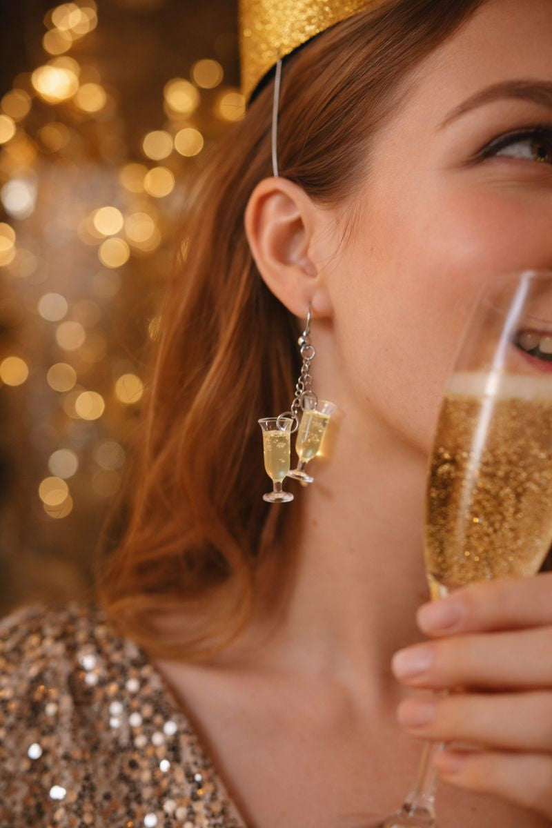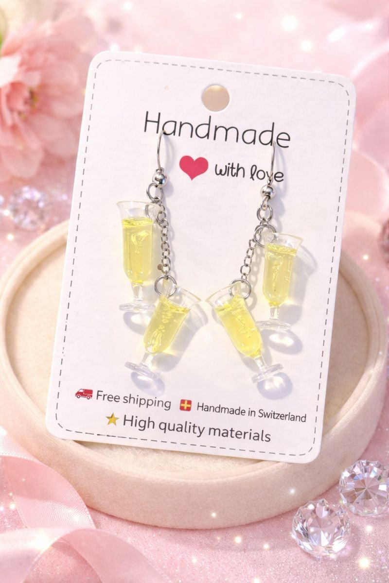 Ogni paio presenta mini calici trasparenti con effetto “bollicine” di spumante, per un look elegante, giocoso e originale — perfetto per aperitivi, feste, serate speciali o come regalo fuori dal comune. Leggeri e confortevoli da indossare, sono ideali per chi ama gioielli creativi, distintivi e non convenzionali.