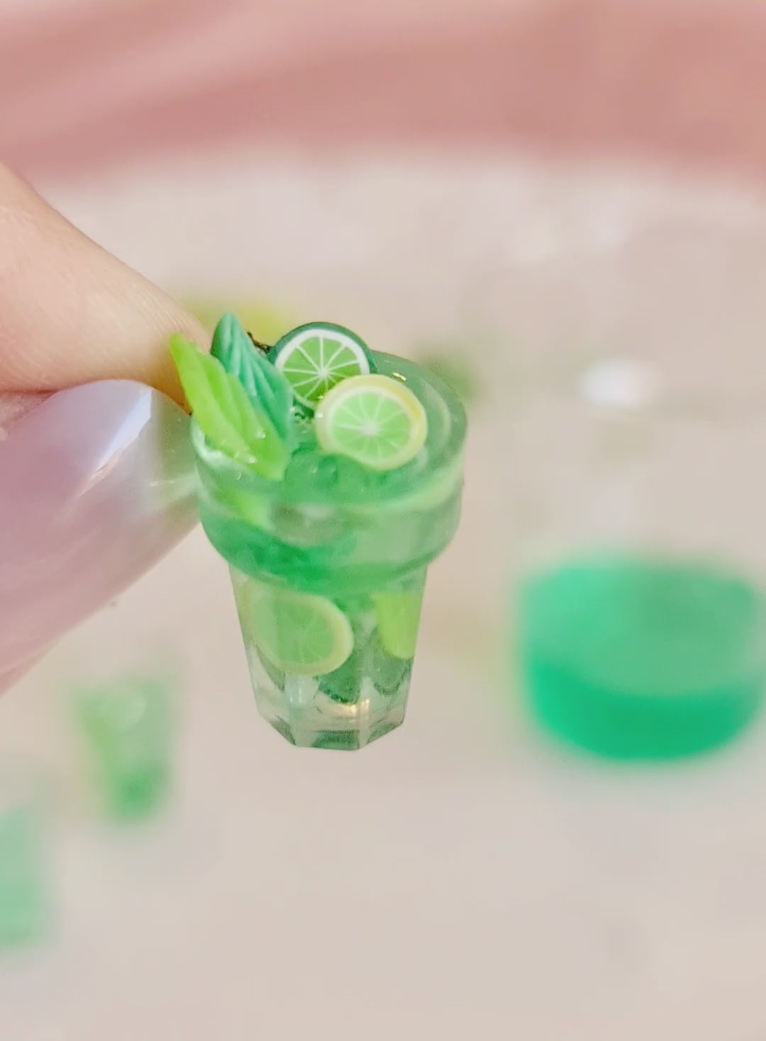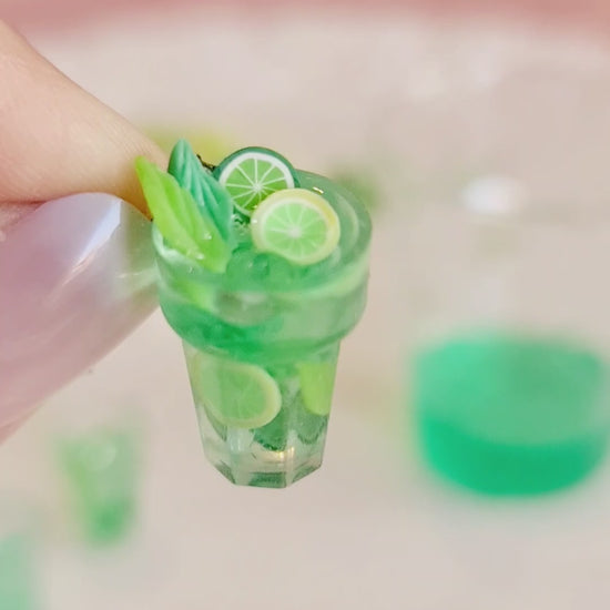 Aggiungi un tocco fresco e originale al tuo look con questi orecchini mojito in miniatura fatti a mano, ispirati al celebre cocktail estivo. Ogni orecchino riproduce con grande cura un bicchiere di mojito, completo di fette di lime e foglie di menta, per un effetto realistico e irresistibile.