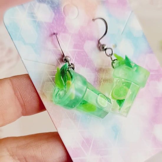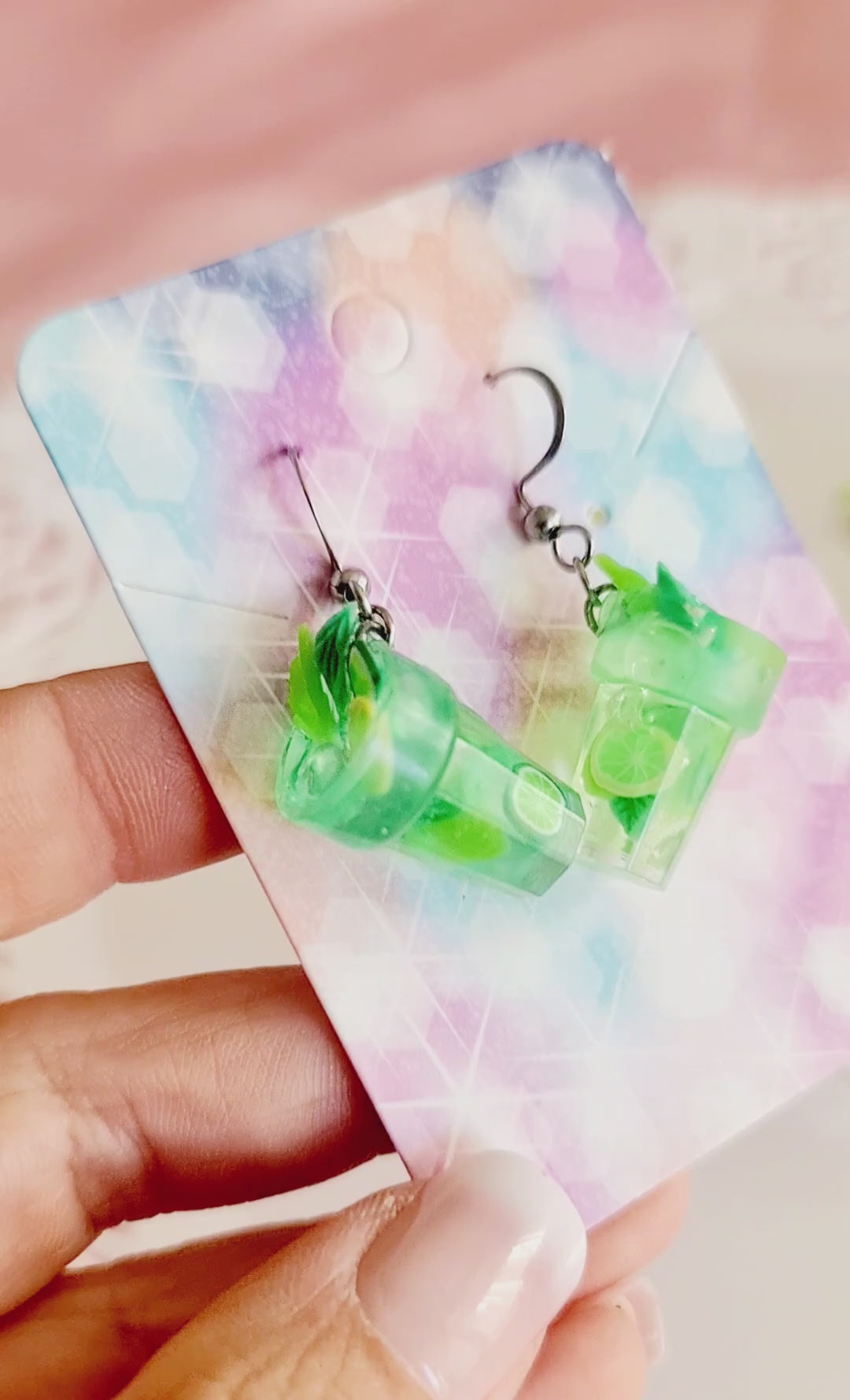 Orecchini Mojito Miniatura Fatti a Mano – Lime e Menta – Gioielli Originali Artigianali
