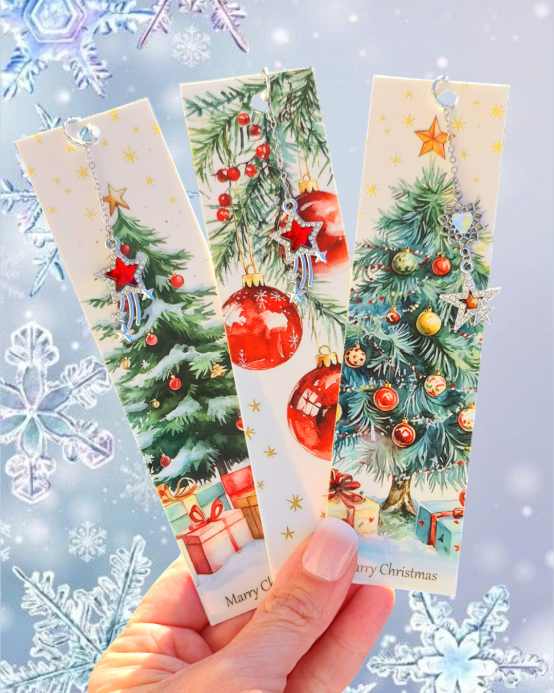 Dovete fare un regalino da abbinare ad un libro? Questi segnalibri a tema natalizio, realizzati a mano, sono originali e coloratissimi. Li ho ideati e realizzati io quindi non li troverete altrove. Sono composti da una base di carta plastificata (che va inserita tra le pagine del libro) a cui ho aggiunto un pendente super luminoso (che rimane fuori dal libro). Sono pezzi unici (per ogni modello ne ho un solo pezzo). Inoltre fino a fine anno sono in promozione. Non fateveli sfuggire!