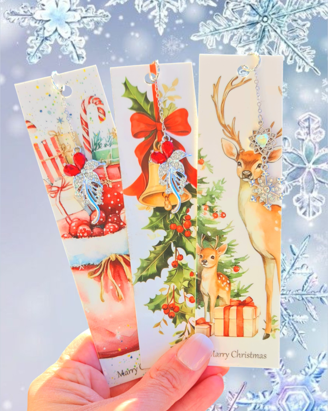 Dovete fare un regalino da abbinare ad un libro? Questi segnalibri a tema natalizio, realizzati a mano, sono originali e coloratissimi. Li ho ideati e realizzati io quindi non li troverete altrove. Sono composti da una base di carta plastificata (che va inserita tra le pagine del libro) a cui ho aggiunto un pendente super luminoso (che rimane fuori dal libro). Sono pezzi unici (per ogni modello ne ho un solo pezzo). Inoltre fino a fine anno sono in promozione. Non fateveli sfuggire!