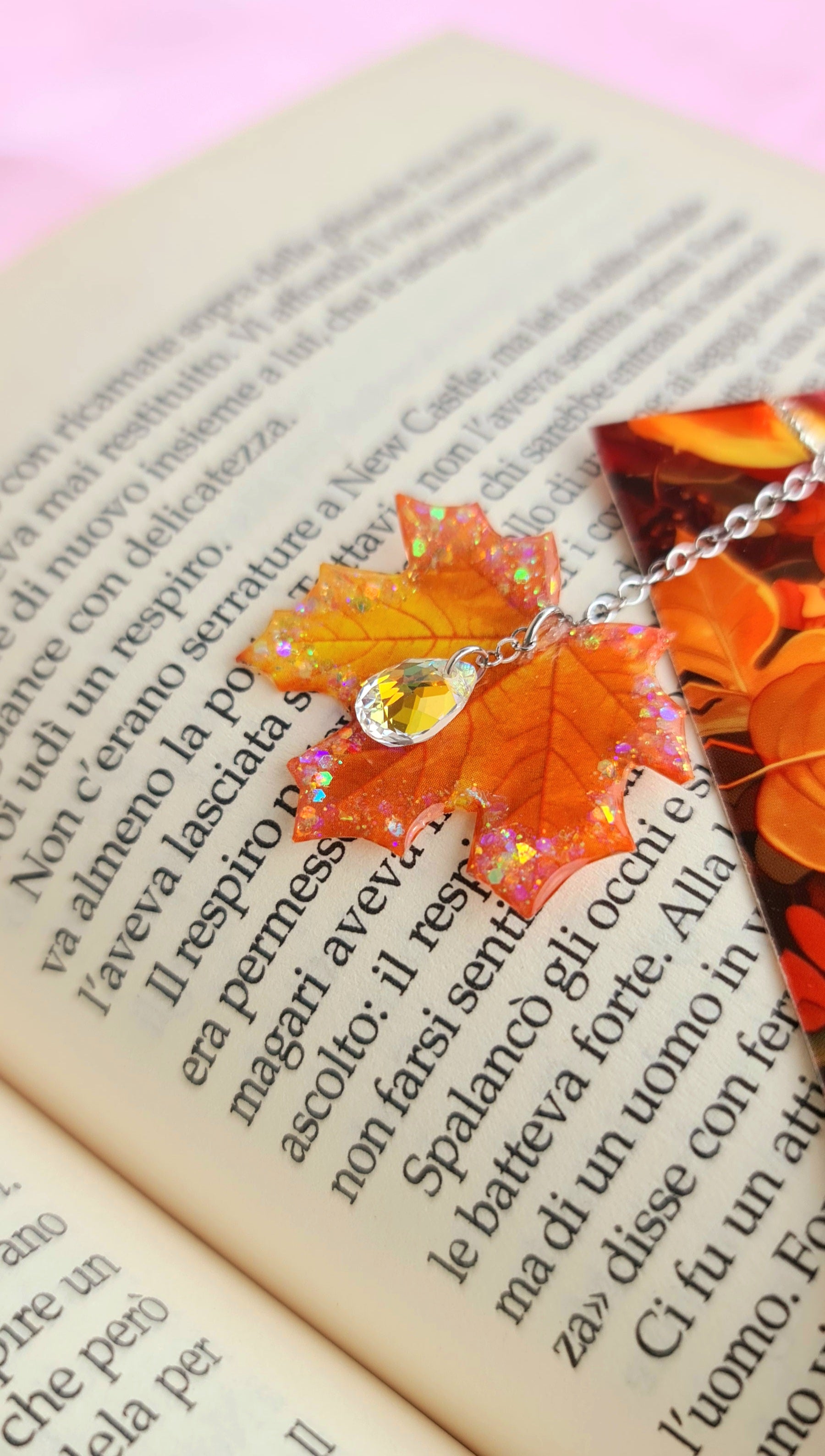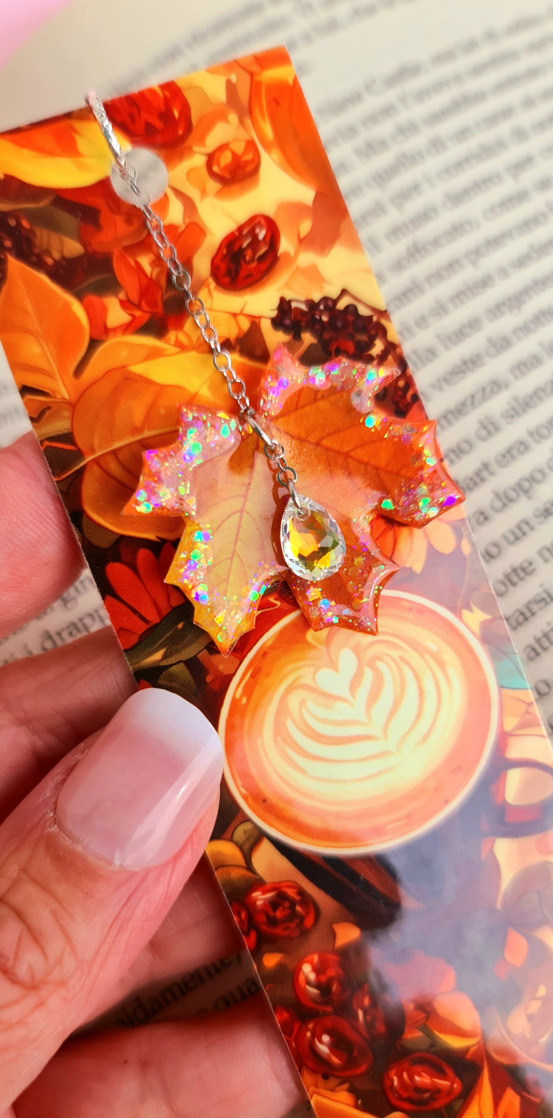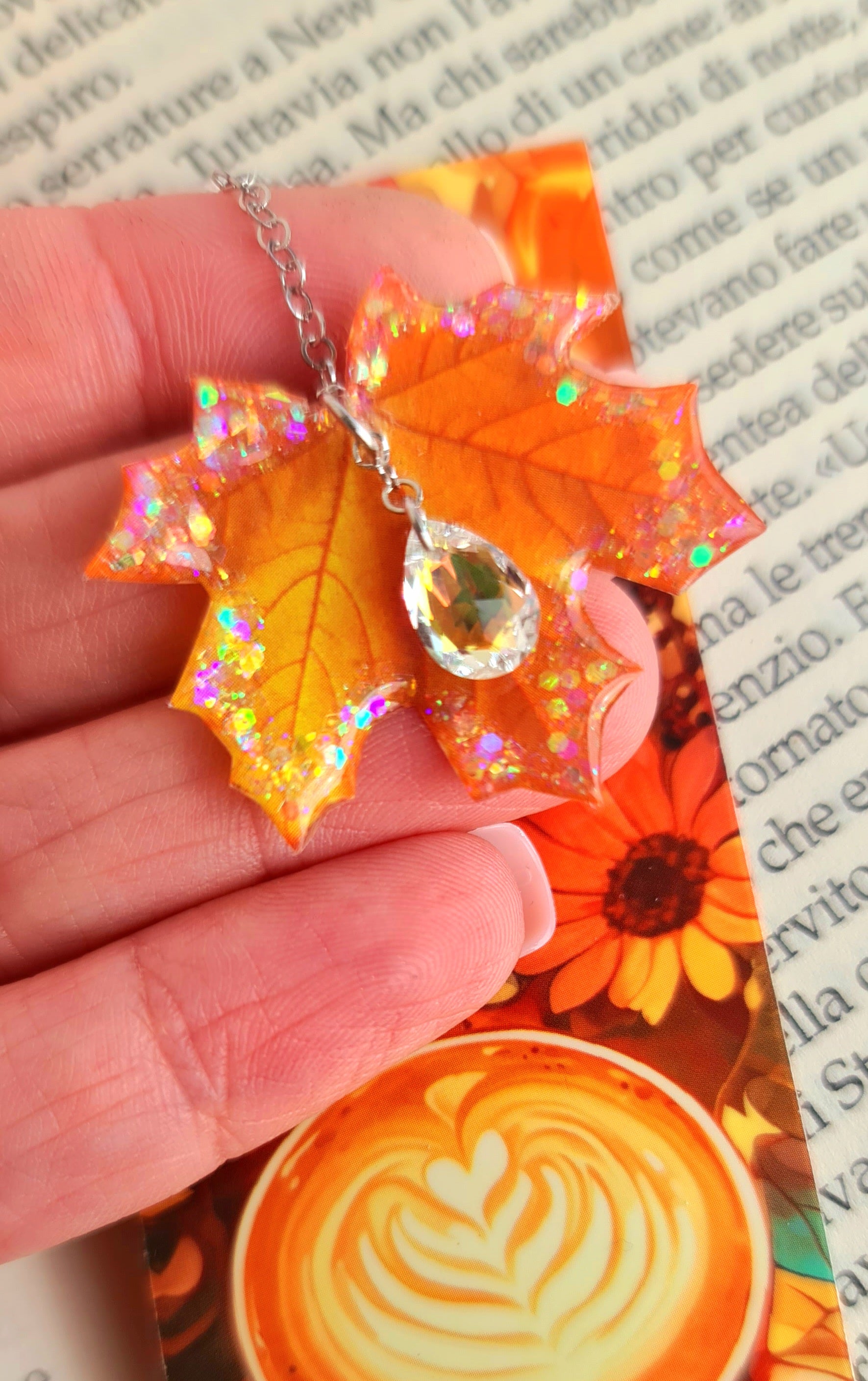Dovete fare un regalino da abbinare ad un libro? Questi segnalibri, realizzati a mano, sono originali e coloratissimi. Li ho ideati e realizzati io quindi non li troverete altrove. Il tema è l'autunno quindi ho pensato di dare un tocco di lucentezza aggiungendo a ciascun segnalibro un ciondolo a forma di foglia, realizzato a mano da me con resina uv e glitter.