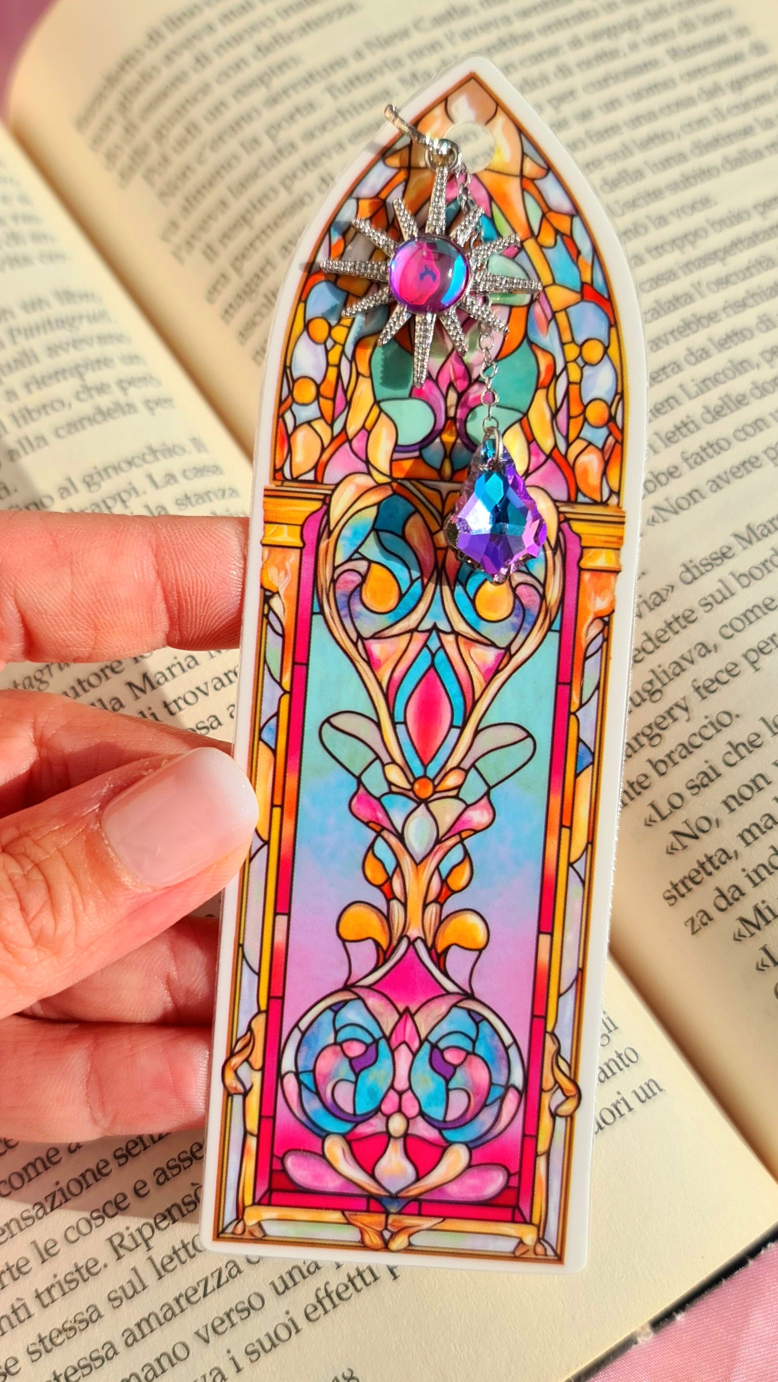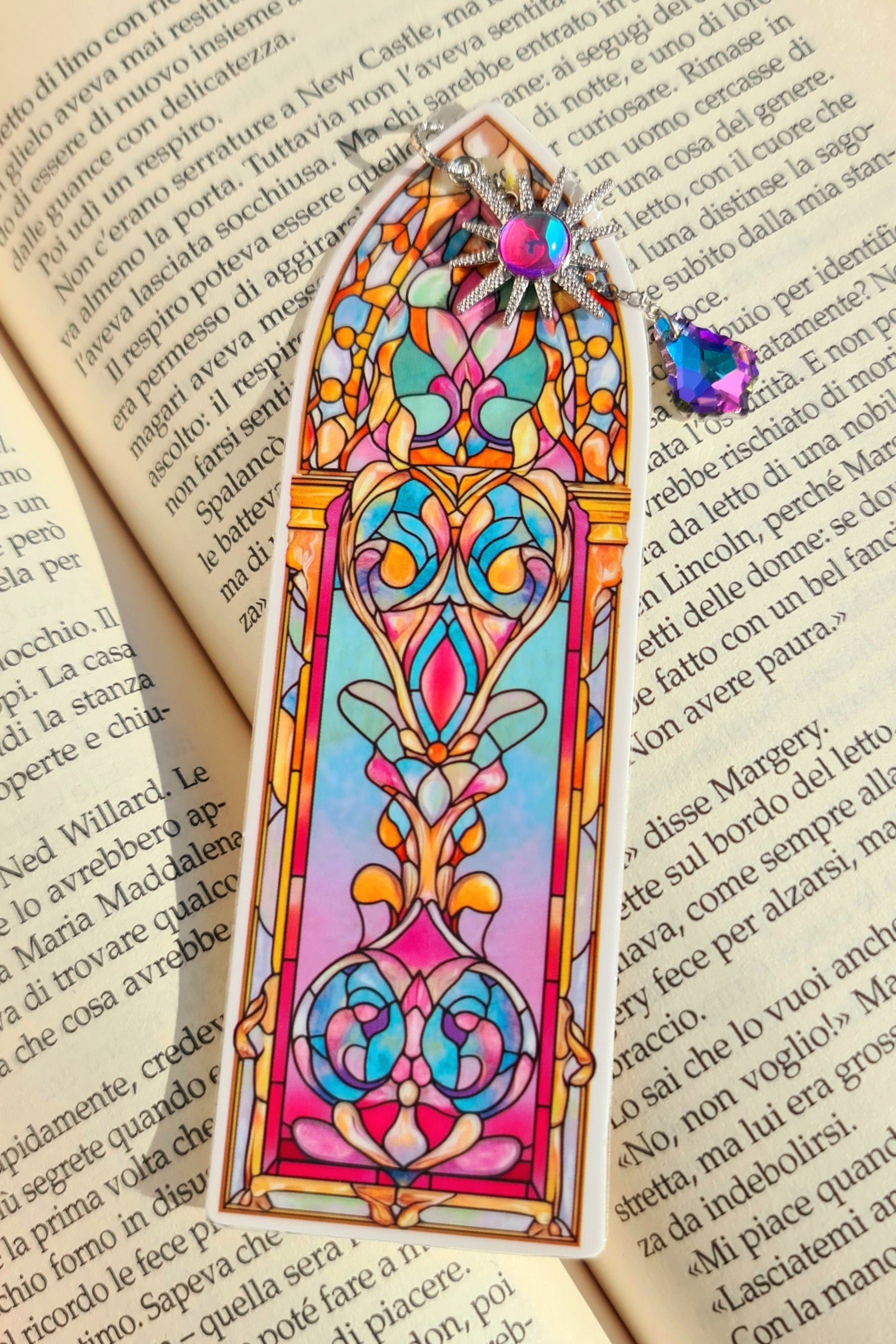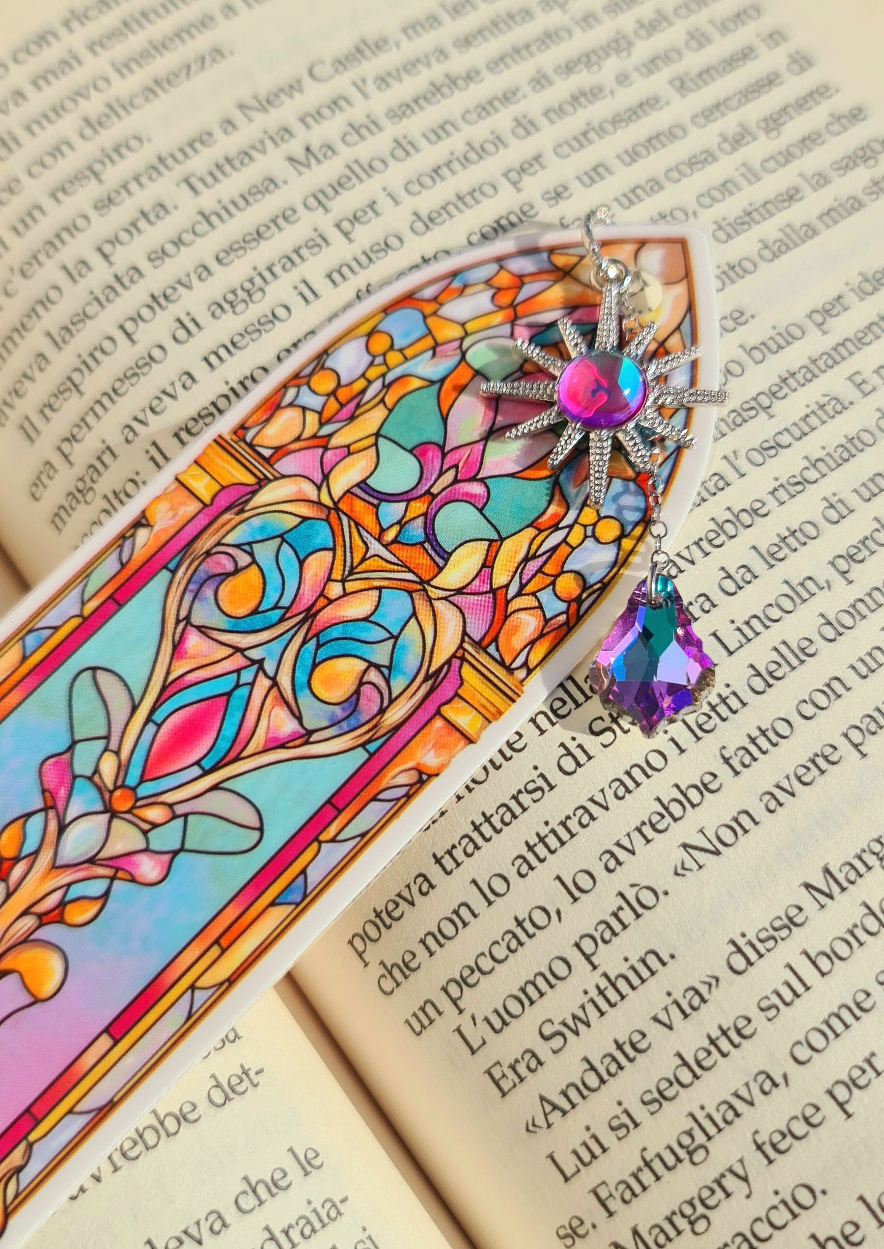 Siete amanti della lettura oppure dovete fare un regalino a qualcuno che ama leggere? Questi segnalibri, realizzati a mano, sono originali e coloratissimi. Li ho ideati e realizzati io quindi non li troverete altrove. L'immagine è quella di una vetrata stile liberty dai toni pastello, a cui ho aggiunto un tocco di lucentezza con dei charm che ne richiamano i colori (che rimarranno fuori dal libro).