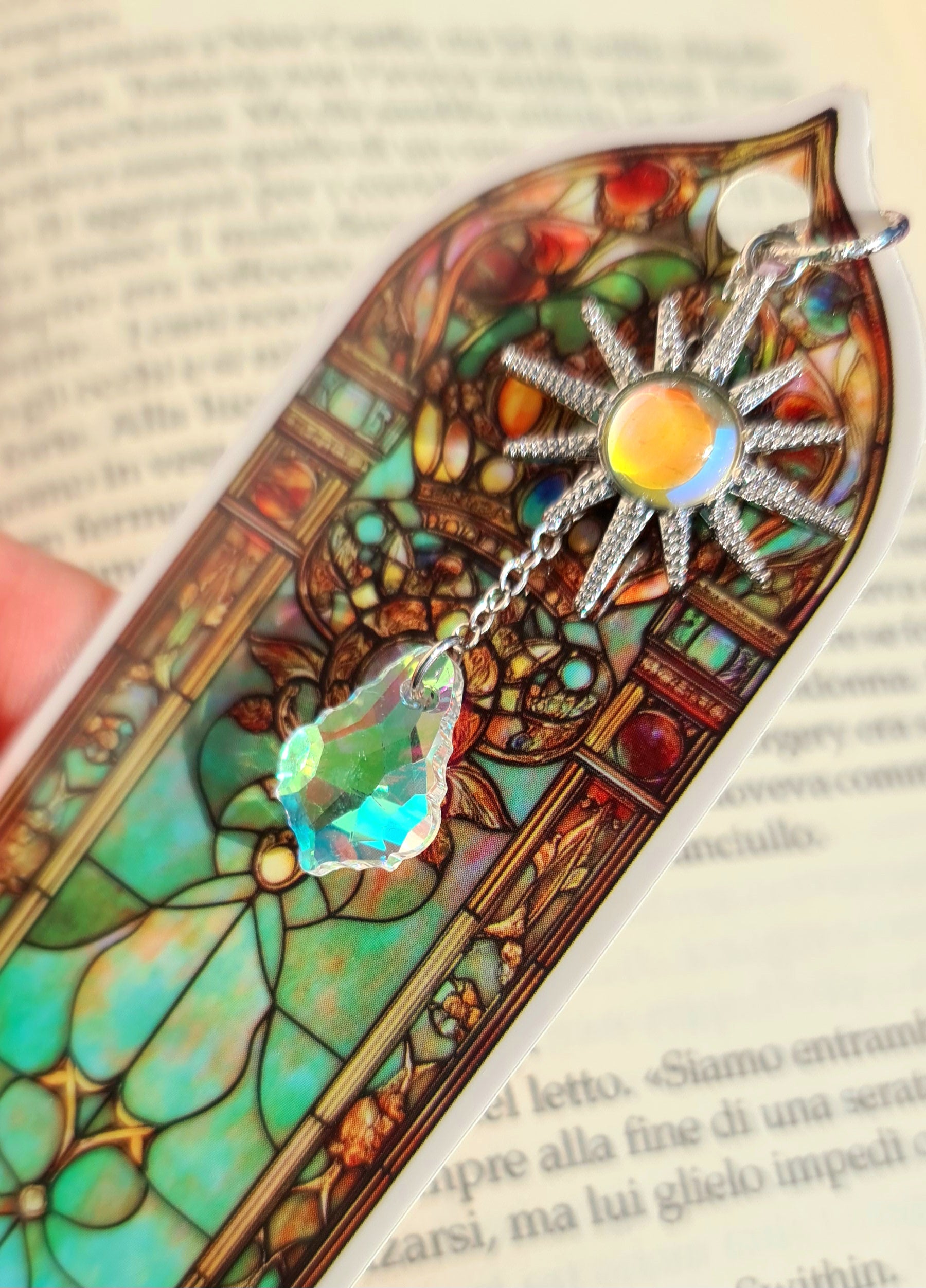 Siete amanti della lettura oppure dovete fare un regalino a qualcuno che ama leggere? Questi segnalibri, realizzati a mano, sono originali e coloratissimi. Li ho ideati e realizzati io quindi non li troverete altrove. L'immagine è quella di una vetrata stile liberty dai toni pastello, a cui ho aggiunto un tocco di lucentezza con dei charm che ne richiamano i colori (che rimarranno fuori dal libro).