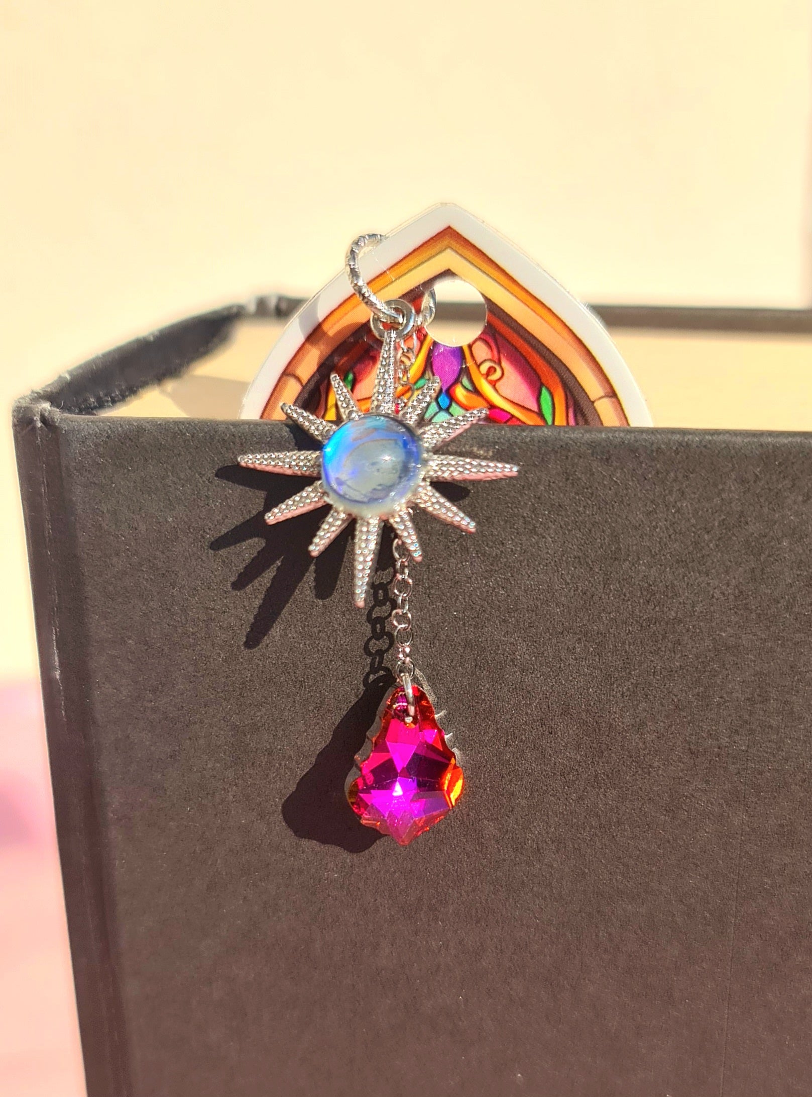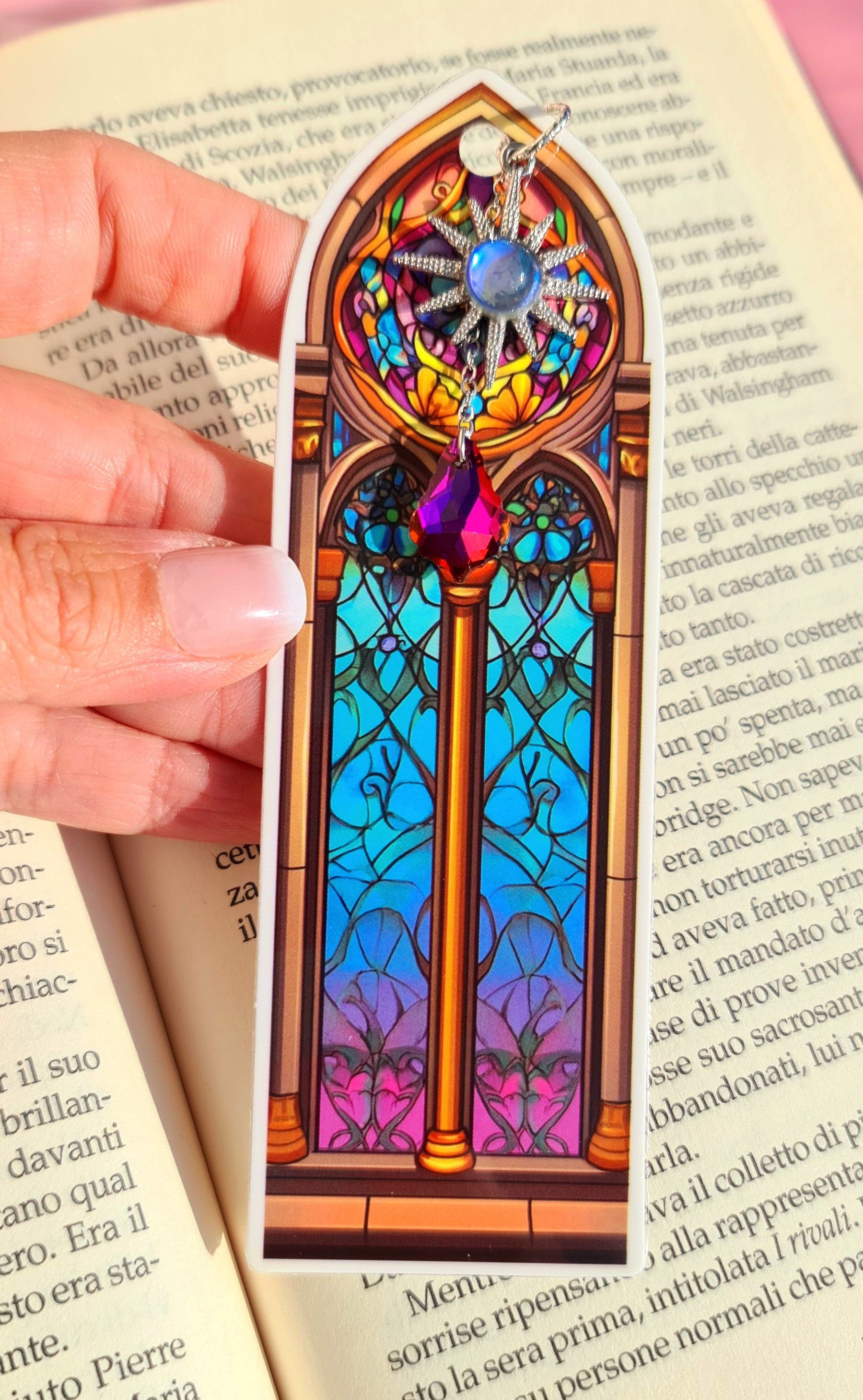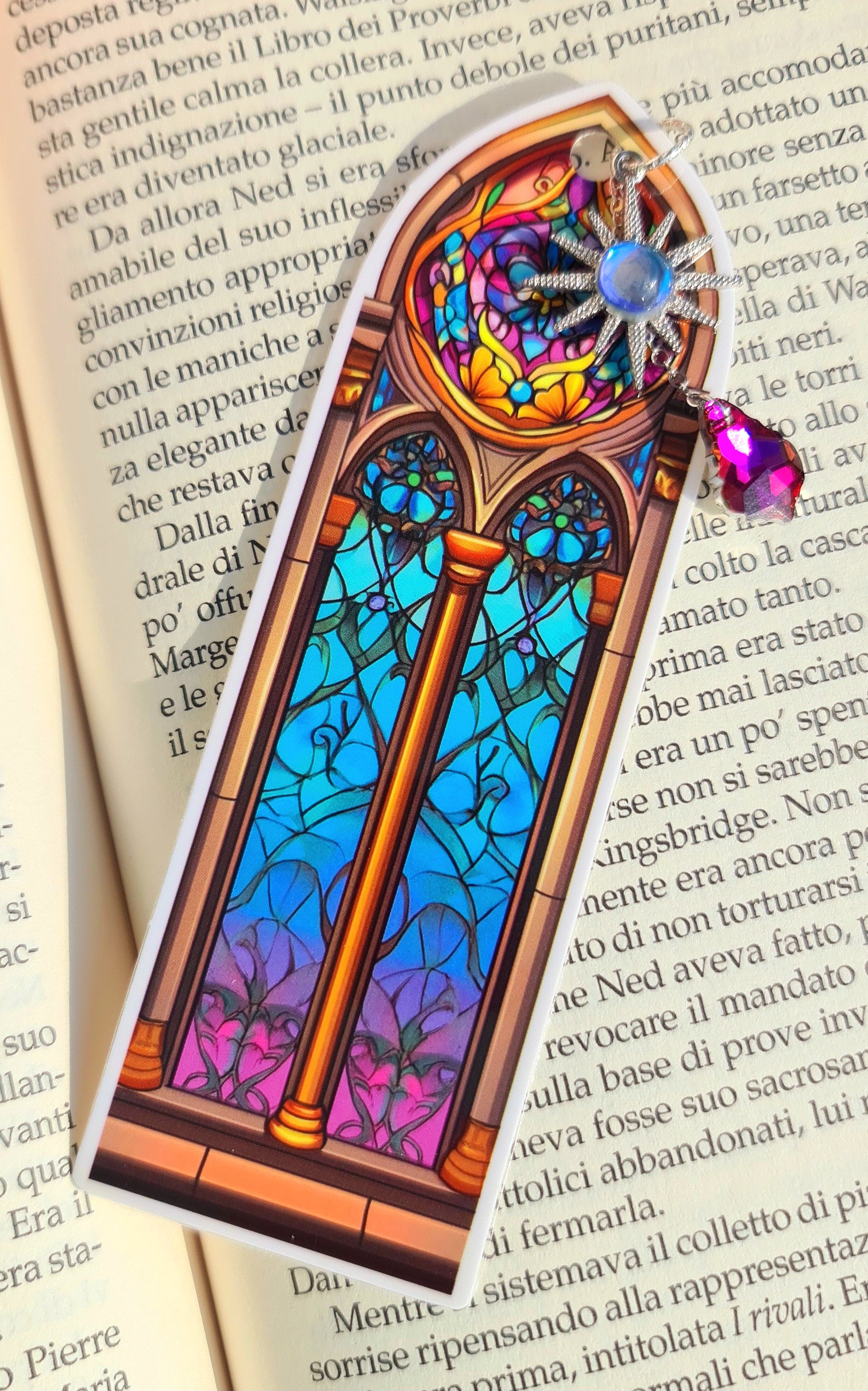 Siete amanti della lettura oppure dovete fare un regalino a qualcuno che ama leggere? Questi segnalibri, realizzati a mano, sono originali e coloratissimi. Li ho ideati e realizzati io quindi non li troverete altrove. L'immagine è quella di una vetrata stile liberty dai toni pastello, a cui ho aggiunto un tocco di lucentezza con dei charm che ne richiamano i colori (che rimarranno fuori dal libro).